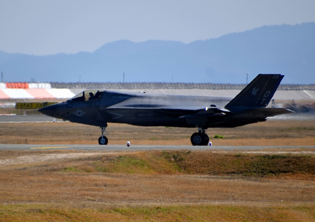米海兵隊 F-35B ライトニングⅡ 戦闘機(岩国基地)、DT、14番機が離陸 |
