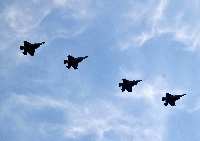 米海兵隊 F-35B ライトニングⅡ 戦闘機(岩国基地)、VK、00番機、01番機、02番機、03番機が4機編隊で帰還 |