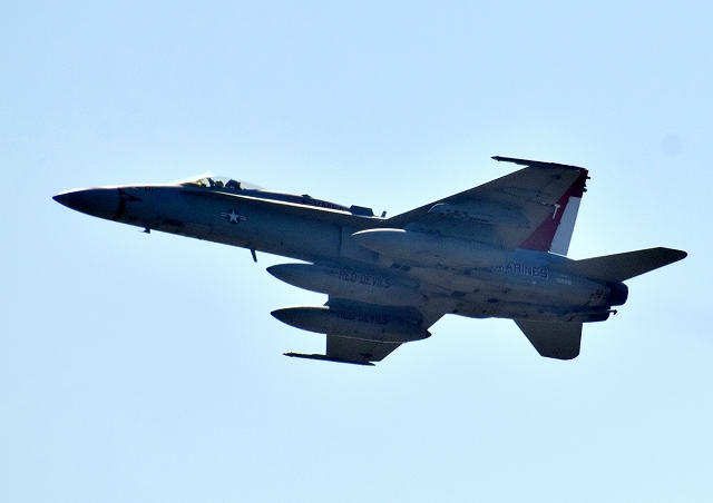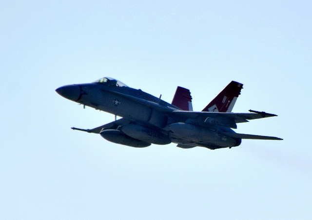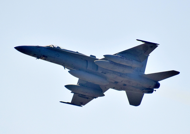 米海兵隊 F/A-18C ホーネット 戦闘攻撃機(岩国基地)、WT、01番機が離陸 |