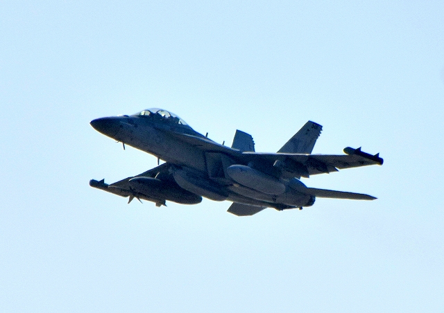 米海軍艦載機 EA-18G グラウラー 電子戦機(岩国基地)、NF、501番機が離陸 |