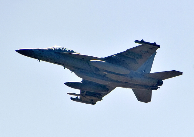 米海兵隊 F/A-18C ホーネット 戦闘攻撃機(岩国基地)、WT、09番機が離陸 |