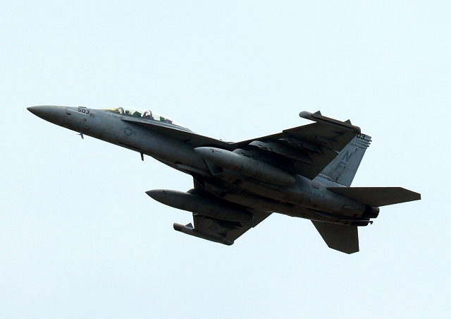 米海軍艦載機 EA-18G グラウラー 電子戦戦闘攻撃機(岩国基地)、NF、503番機が離陸 |