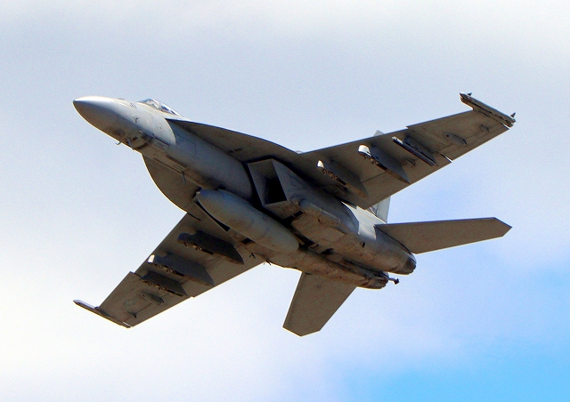 米海軍艦載機 F/A-18E スーパーホーネット 戦闘攻撃機(岩国基地)、NF、211番機が離陸 |