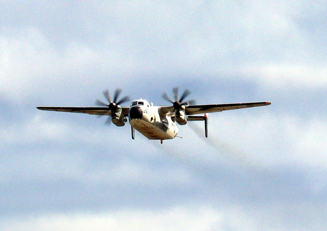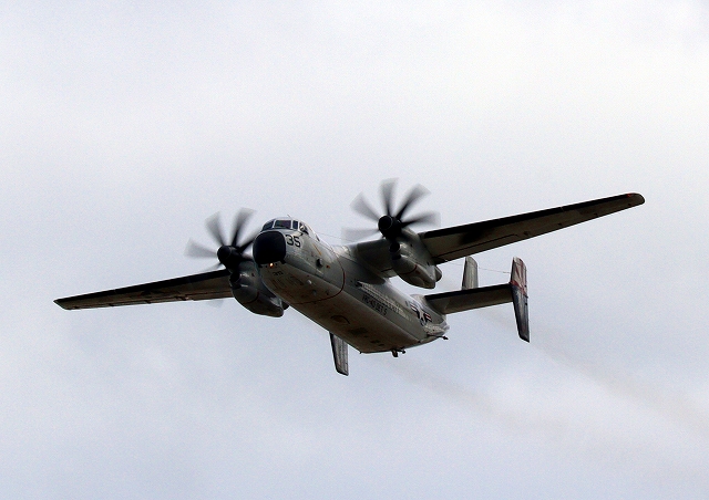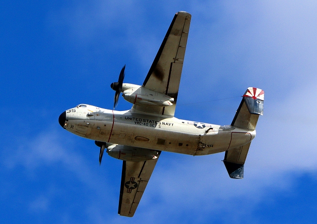 米海軍艦載機 C-2A グレイハウンド 空母連絡機(岩国基地)、35番機が離陸 |