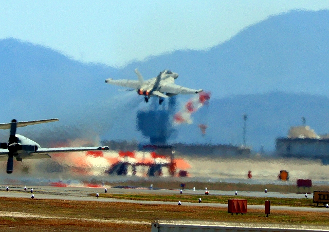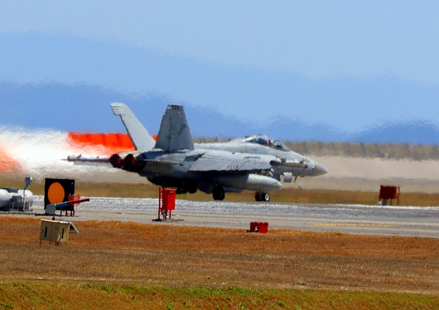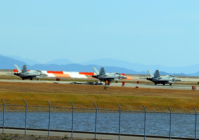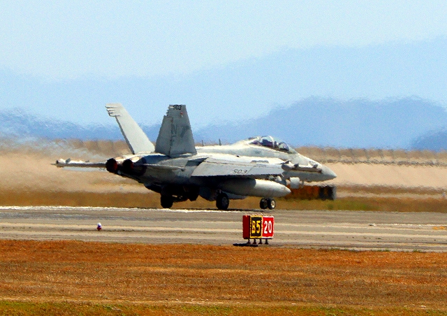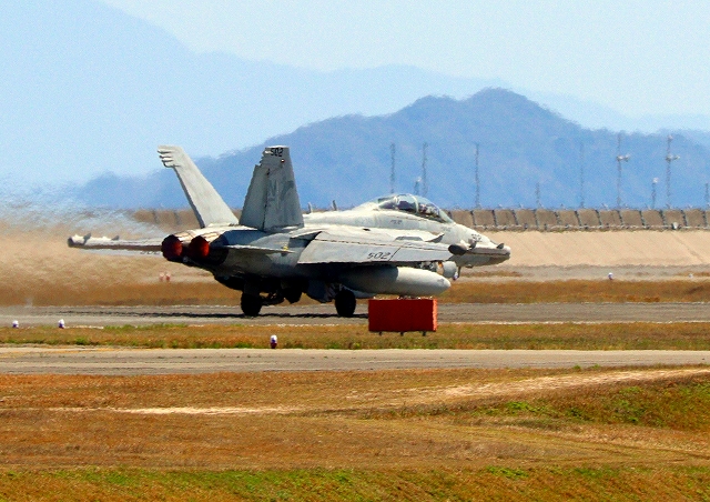 米海軍艦載機 EA-18G グラウラー 電子戦戦闘攻撃機(岩国基地)、NF、502番機が離陸 |