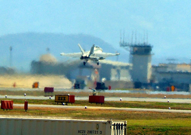 米海軍艦載機 EA-18G グラウラー 電子戦戦闘攻撃機(岩国基地)、NF、505番機が離陸 |