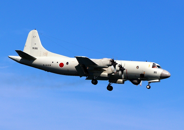 海上自衛隊 OP-3C 画像情報収集機(岩国基地)、9135番機が旋回 |