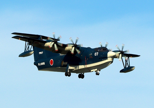 海上自衛隊 US-2 救難飛行艇(岩国基地)、9907番機が着陸 |