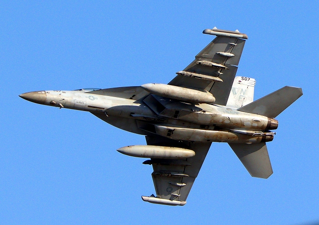 米海軍艦載機 EA-18G グラウラー 電子戦戦闘攻撃機(岩国基地)、NF、507番機が離陸 |