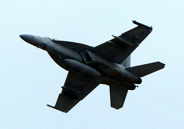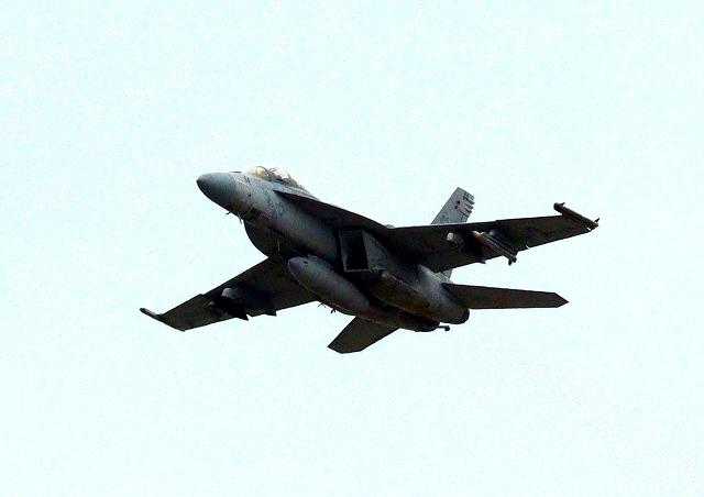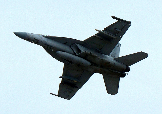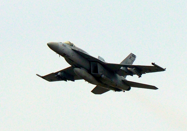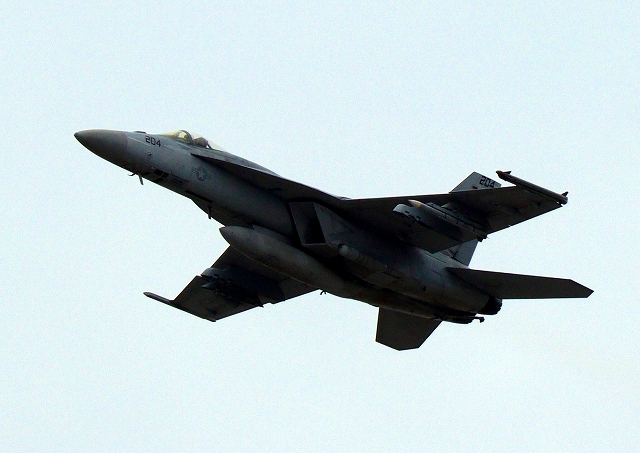 米海軍艦載機 F/A-18E スーパーホーネット 戦闘攻撃機(岩国基地)、NF、204番機が離陸 |