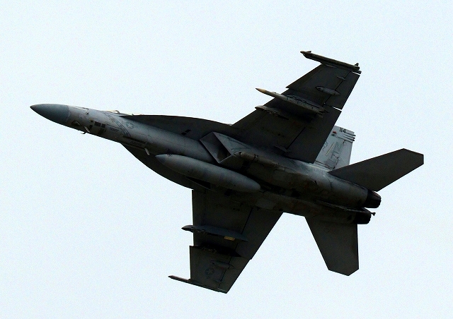 米海軍艦載機 F/A-18F スーパーホーネット 戦闘攻撃機(岩国基地)、NF、114番機が離陸 |