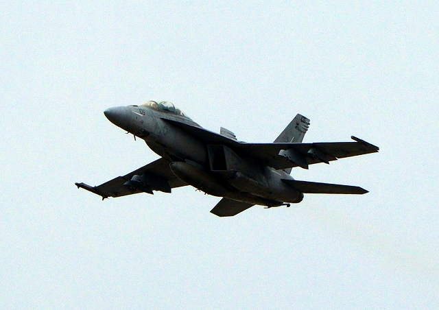 米海軍艦載機 F/A-18F スーパーホーネット 戦闘攻撃機(岩国基地)、NF、105番機が離陸 |