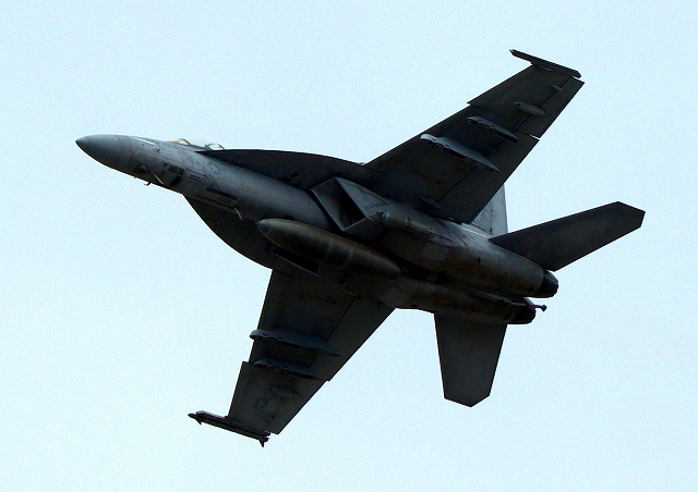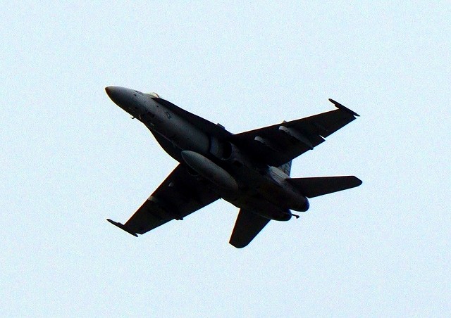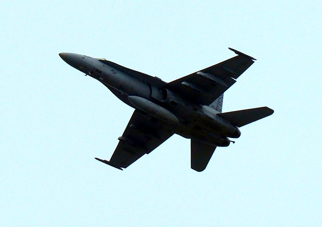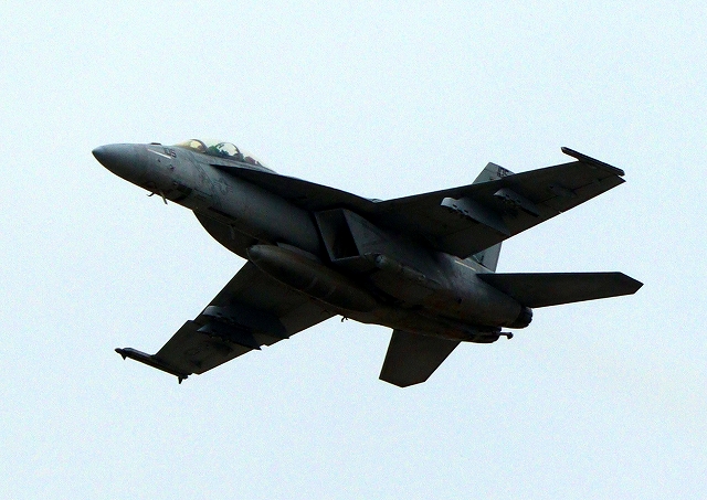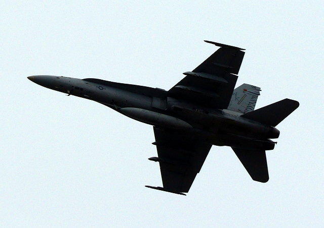 米海兵隊 F/A-18C ホーネット 戦闘攻撃機(岩国基地)、WK、04番機が旋回(1周目) |