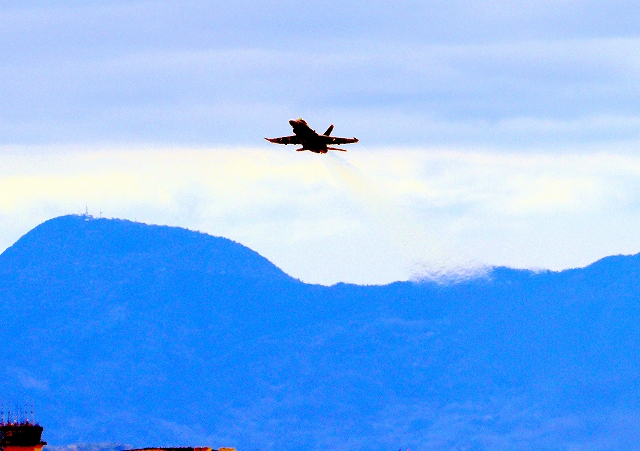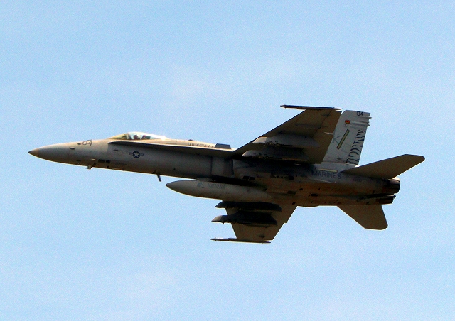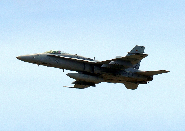 米海兵隊 F/A-18C ホーネット 戦闘攻撃機(岩国基地)、WK、04番機が離陸 |