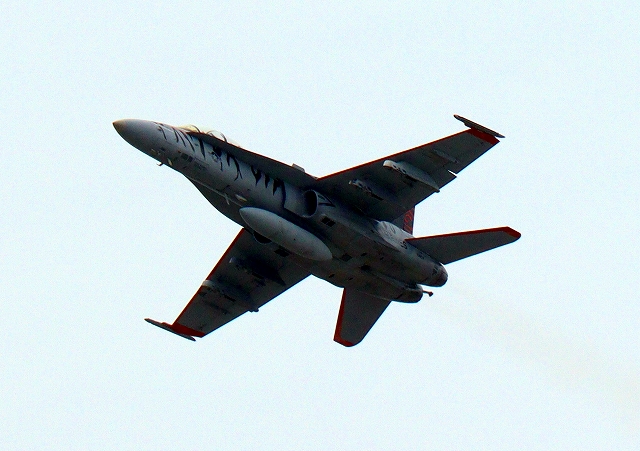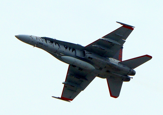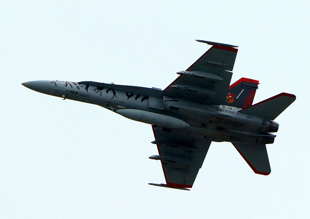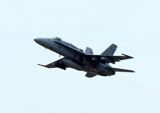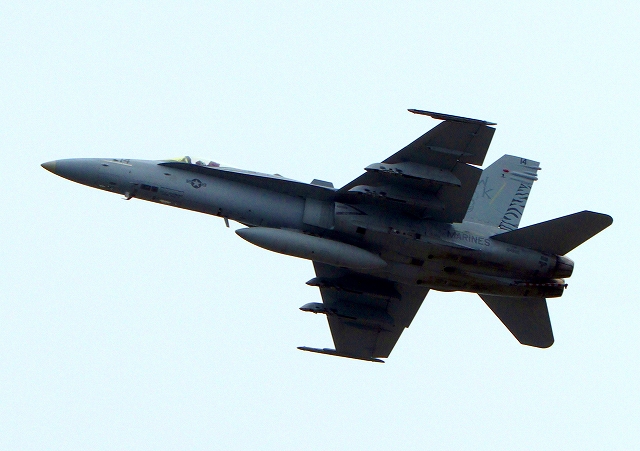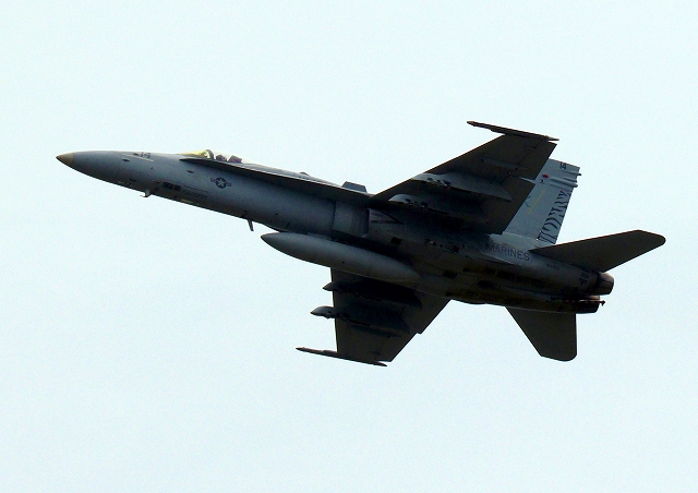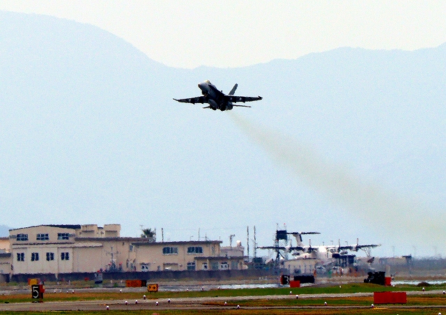 米海兵隊 F/A-18D ホーネット 戦闘攻撃機(岩国基地)、WK、01番機が離陸 |