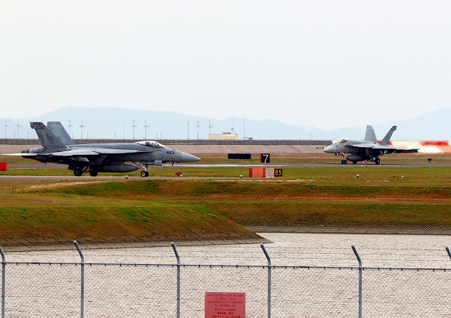 米海軍艦載機 F/A-18E スーパーホーネット 戦闘攻撃機(岩国基地)、NF、403番機、411番機 |