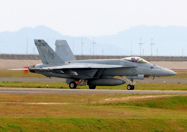 米海軍艦載機 F/A-18E スーパーホーネット 戦闘攻撃機(岩国基地)、NF、411番機 |