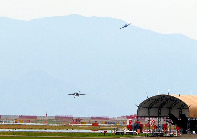 米海軍艦載機 F/A-18E スーパーホーネット 戦闘攻撃機(岩国基地)、NF、210番機、204番機が帰還 |