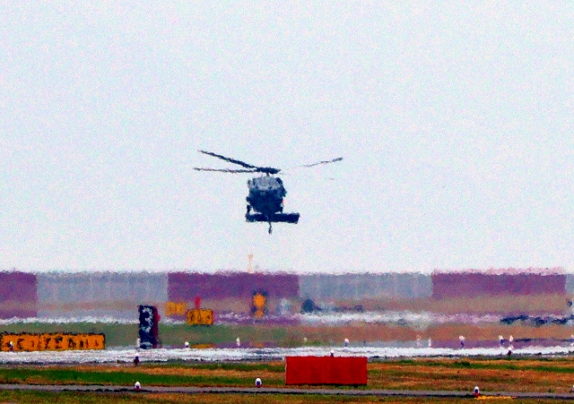 米海軍艦載機 MH-60R 統合多用途艦載ヘリ シーホーク(厚木基地)、1機目は中に消えました。 |