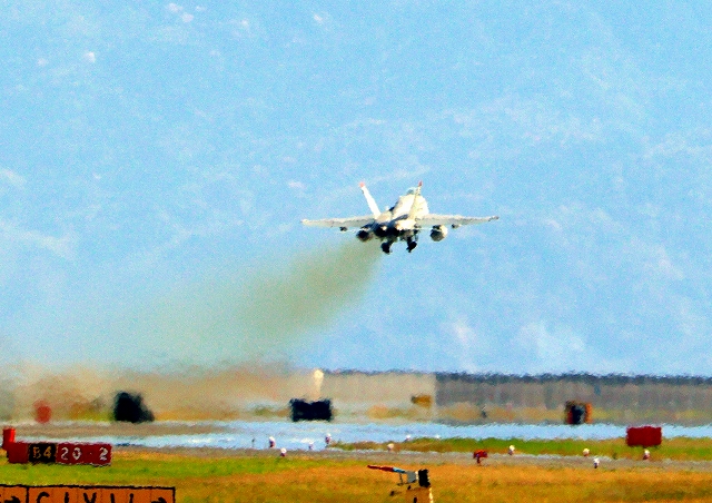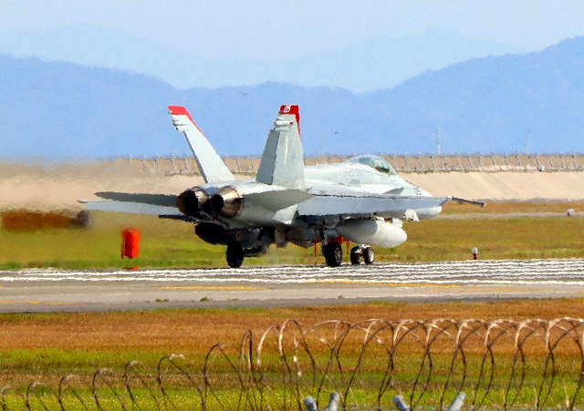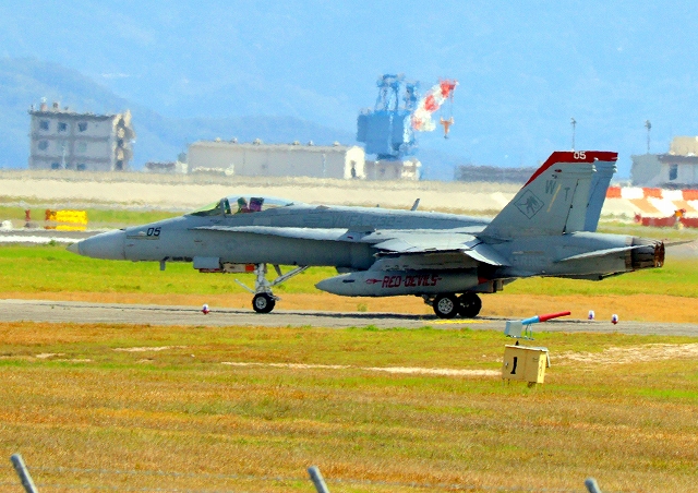 米海兵隊 F/A-18C ホーネット 戦闘攻撃機(岩国基地)、WK、05番機が離陸 |