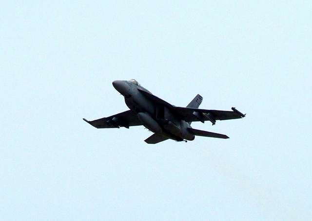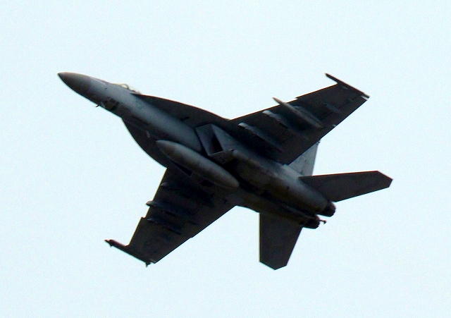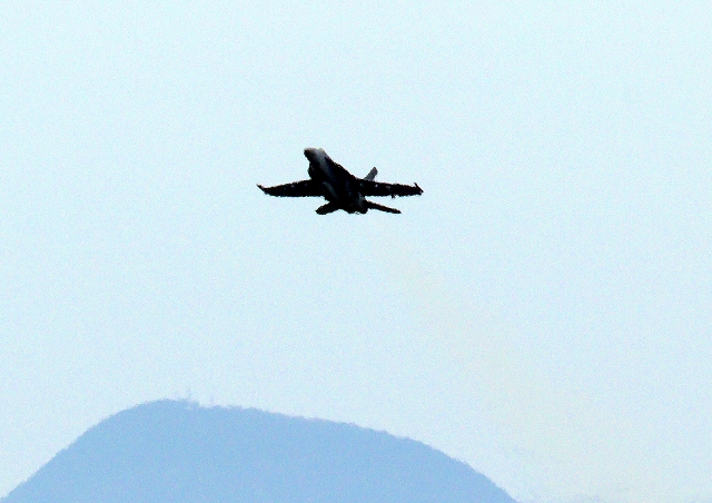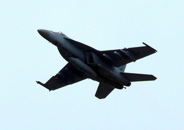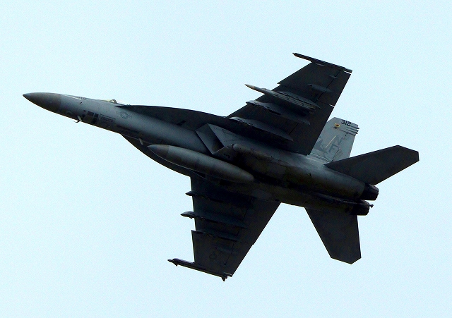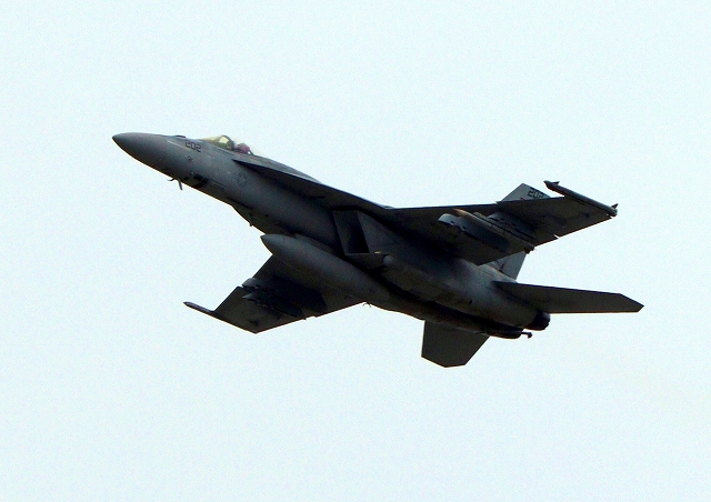 米海軍艦載機 F/A-18E スーパーホーネット 戦闘攻撃機(岩国基地)、NF202番機が離陸 |