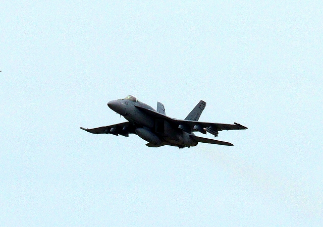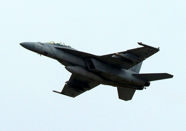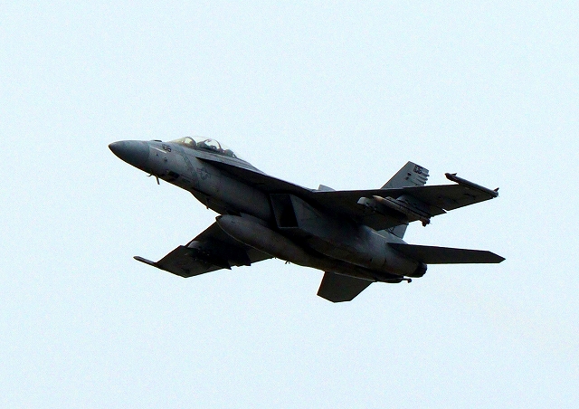 米海軍艦載機 F/A-18F スーパーホーネット 戦闘攻撃機(岩国基地)、NF、106番機が離陸 |