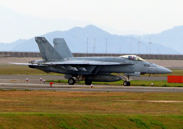 米海軍艦載機 F/A-18E スーパーホーネット 戦闘攻撃機(岩国基地)、NF、402番機 |