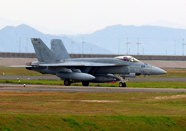 米海軍艦載機 F/A-18E スーパーホーネット 戦闘攻撃機(岩国基地)、NF、214番機 |