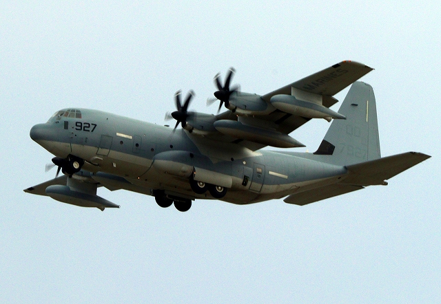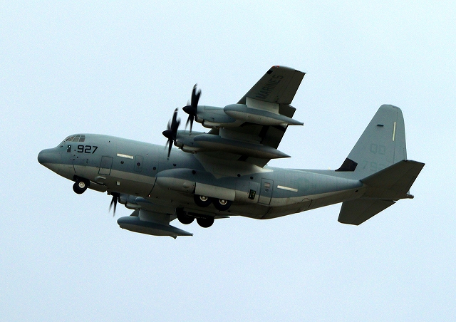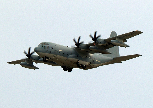 米海兵隊 KC-130J 空中給油機 スーパーハーキュリーズ(岩国基地)、QD 7927番機 |