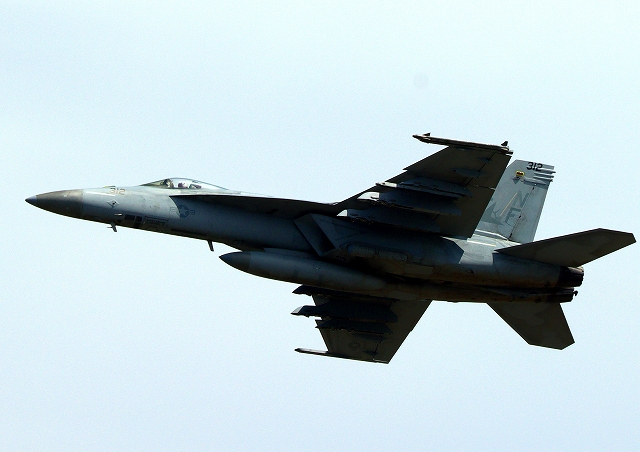 米海軍艦載機 F/A-18E スーパーホーネット 戦闘攻撃機(岩国基地)、NF、311番機が離陸 |