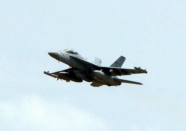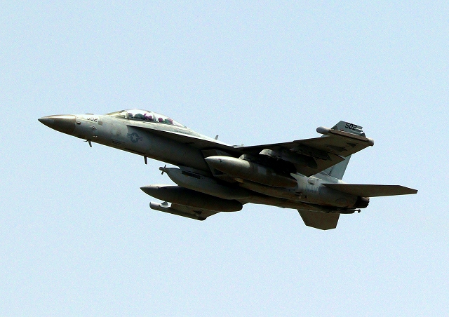 米海軍艦載機 EA-18G グラウラー 電子戦戦闘攻撃機(岩国基地)、NF、502番機が離陸 |