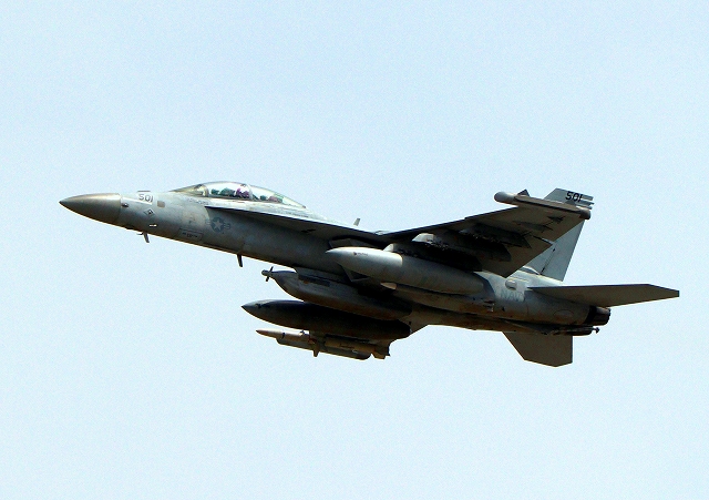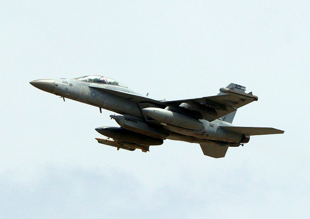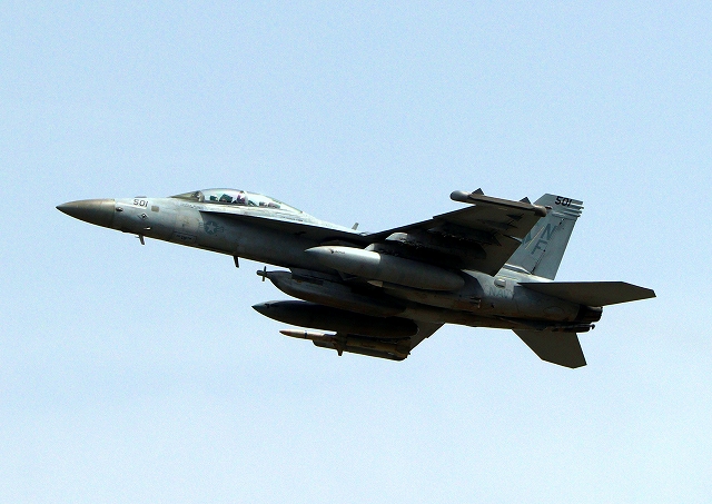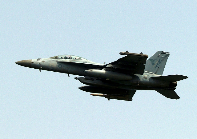 米海軍艦載機 EA-18G グラウラー 電子戦戦闘攻撃機(岩国基地)、NF、501番機が離陸 |
