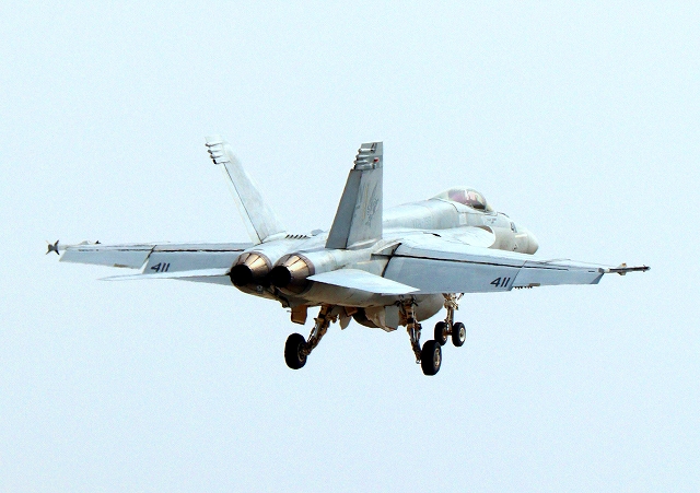 米海軍艦載機 F/A-18E スーパーホーネット 戦闘攻撃機(岩国基地)、NF、411番機 |