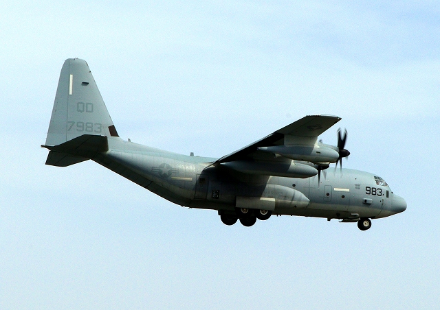 米海兵隊 KC-130J 空中給油機 スーパーハーキュリーズ(岩国基地)、QD 7983番機 |