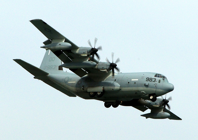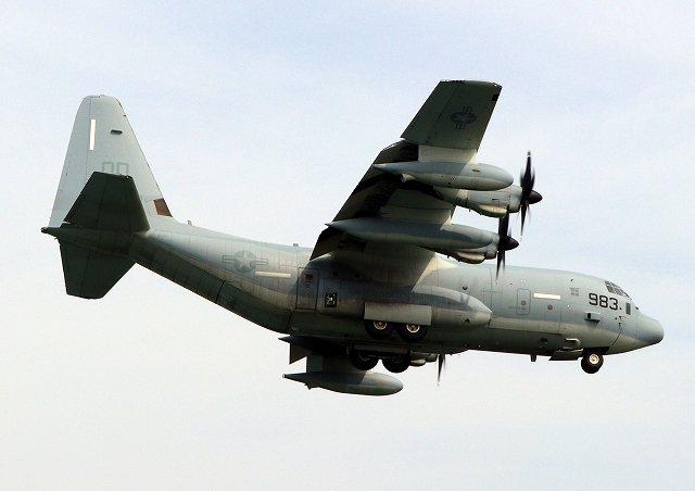米海兵隊 KC-130J 空中給油機 スーパーハーキュリーズ(岩国基地)、QD 7983番機 |