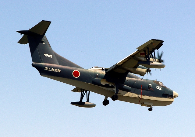 海上自衛隊 US-2 救難飛行艇(岩国基地)、9902番機が旋回 |
