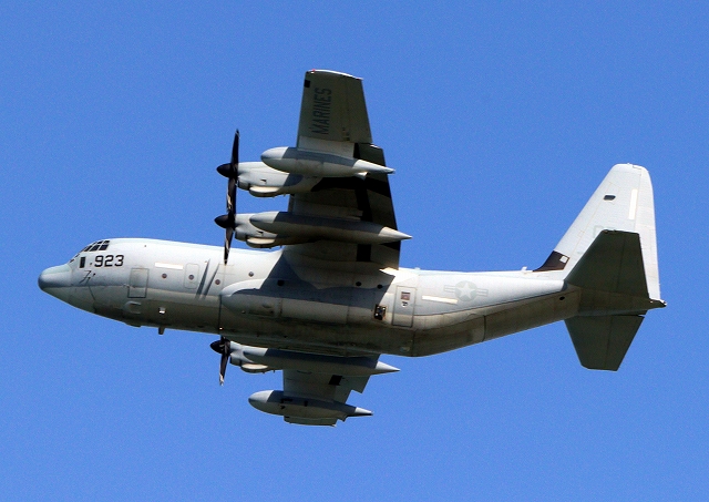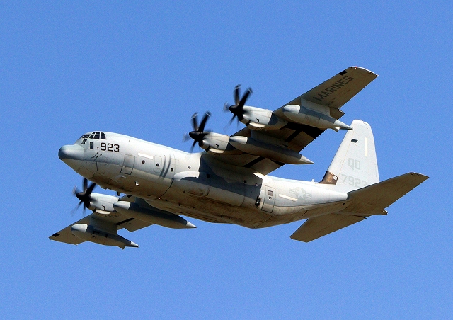 米海兵隊 KC-130J 空中給油機 スーパーハーキュリーズ(岩国基地)、QD 7983番機 |