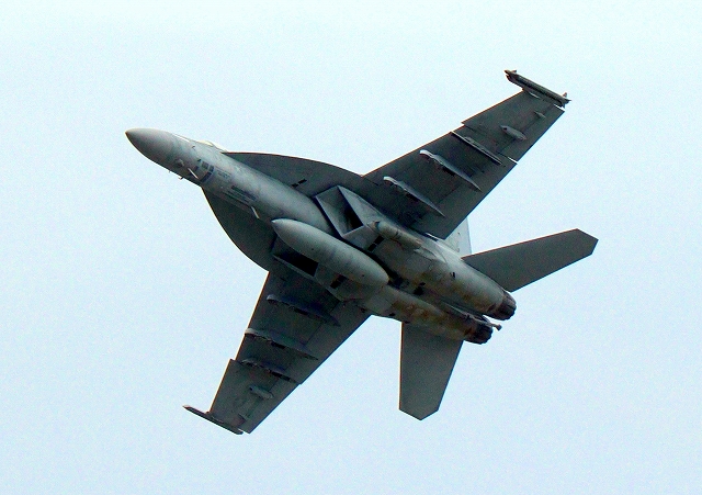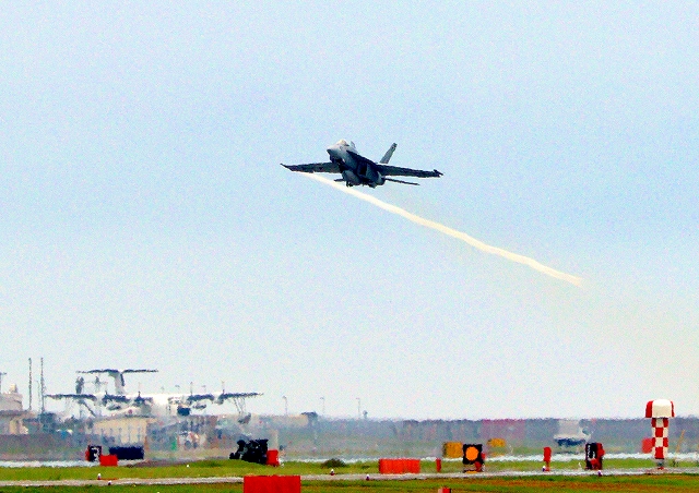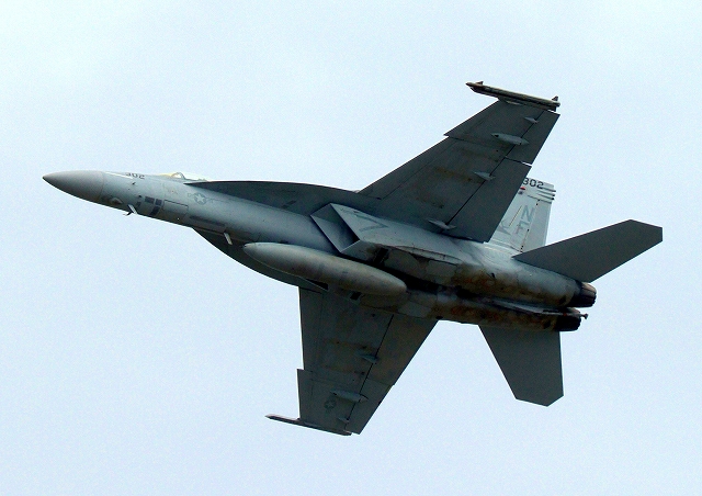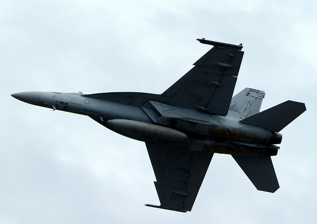 米海軍艦載機 F/A-18E スーパーホーネット 戦闘攻撃機(岩国基地)、NF、302番機が離陸 |