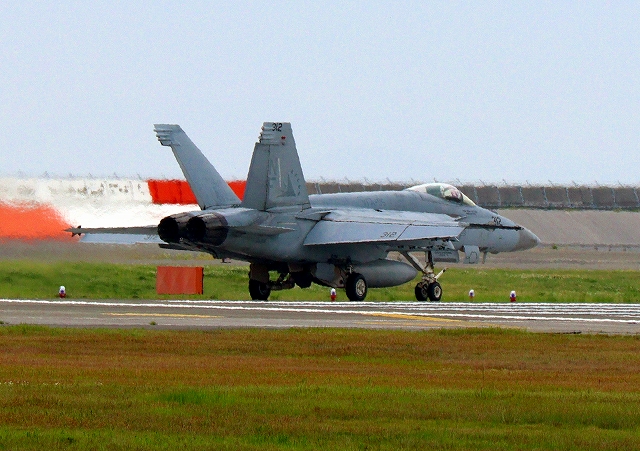 米海軍艦載機 F/A-18E スーパーホーネット 戦闘攻撃機(岩国基地)、NF、312番機が離陸 |