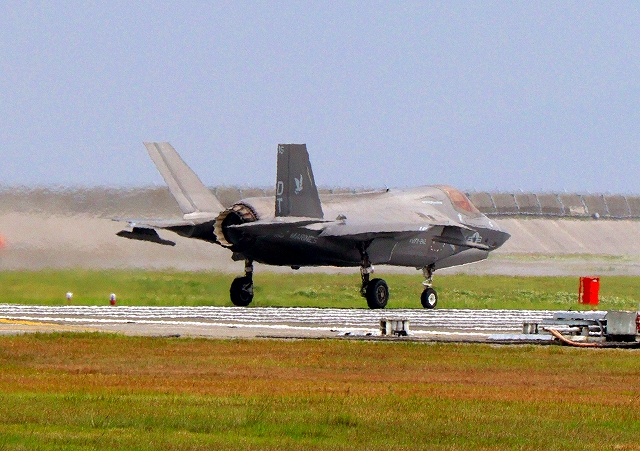 米海兵隊 F-35B ライトニングⅡ 戦闘機(岩国基地)、DT、06番機が離陸 |