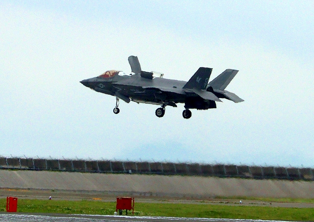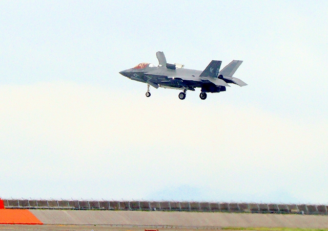 米海兵隊 F-35B ライトニングⅡ 戦闘機(岩国基地)、DT、08番機が着陸 |
