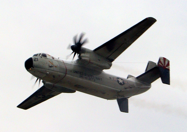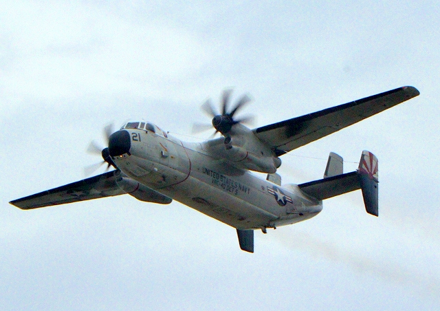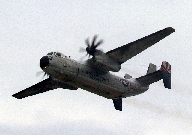米海軍艦載機 C-2A グレイハウンド 空母連絡機(岩国基地)、21番機が旋回 |