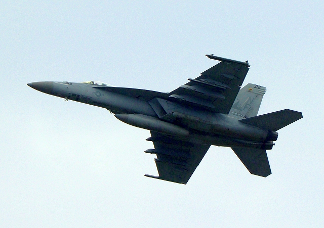 米海軍艦載機 F/A-18E スーパーホーネット 戦闘攻撃機(岩国基地)、NF、302番機が離陸 |