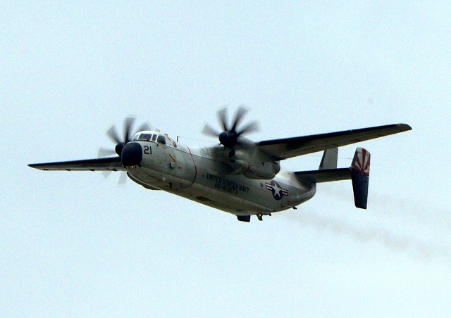 米海軍艦載機 C-2A グレイハウンド 空母連絡機(岩国基地)、21番機が旋回 |