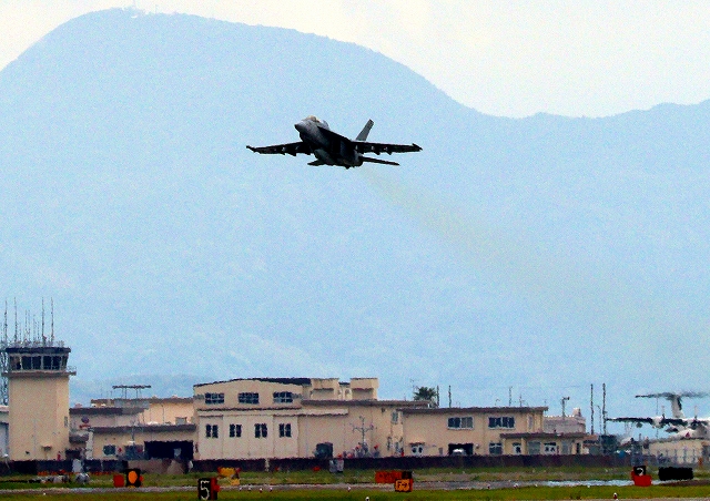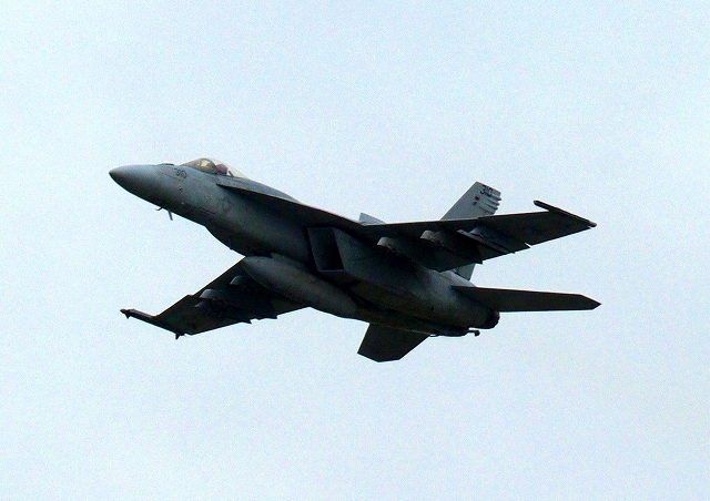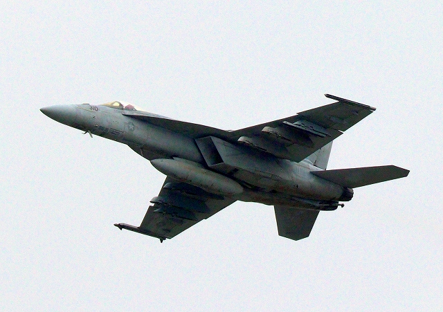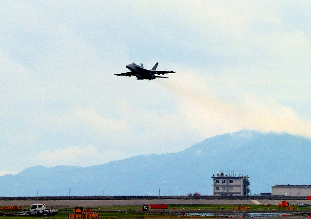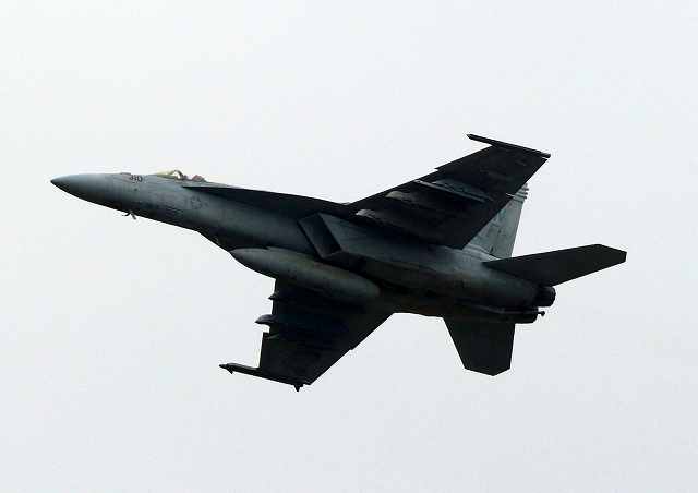 米海軍艦載機 F/A-18E スーパーホーネット 戦闘攻撃機(岩国基地)、NF、310番機が離陸 |