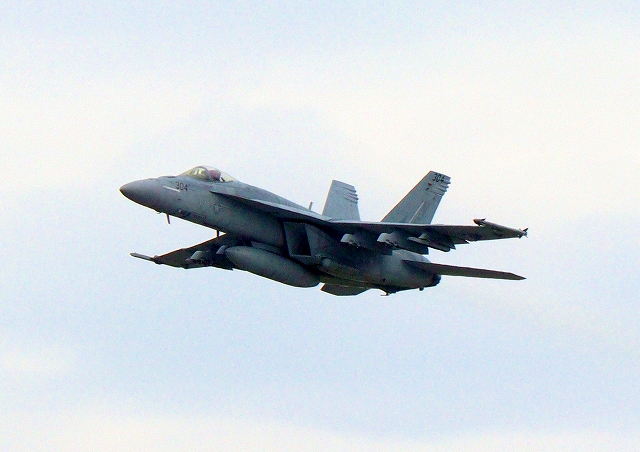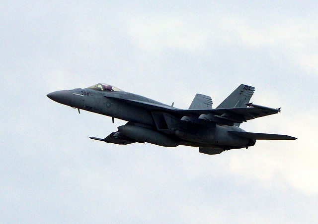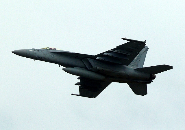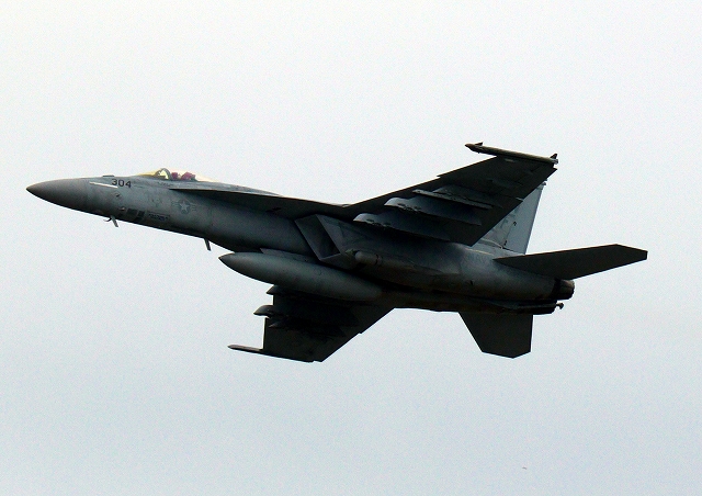 米海軍艦載機 F/A-18E スーパーホーネット 戦闘攻撃機(岩国基地)、NF、304番機が離陸 |