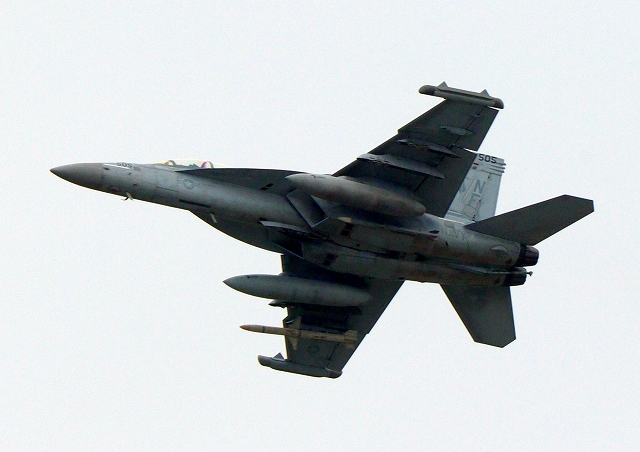 米海軍艦載機 EA-18G グラウラー 電子戦戦闘攻撃機(岩国基地)、NF、505番機が離陸 |