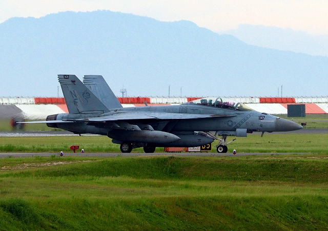 米海軍艦載機 F/A-18F スーパーホーネット 戦闘攻撃機(岩国基地)、NF、107番機 |