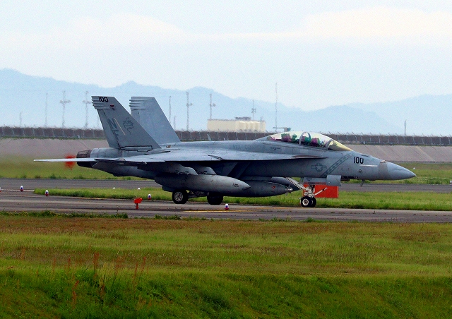 米海軍艦載機 F/A-18F スーパーホーネット 戦闘攻撃機(岩国基地)、NF、100番機 |