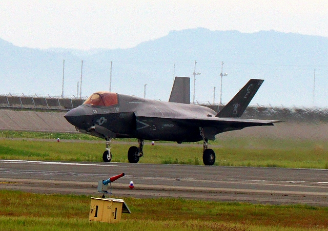 米海兵隊 F-35B ライトニングⅡ 戦闘機(米本国海兵隊基地)、CE、05番機が着陸 13時47分に離陸した機。58分間の飛行でした。 |